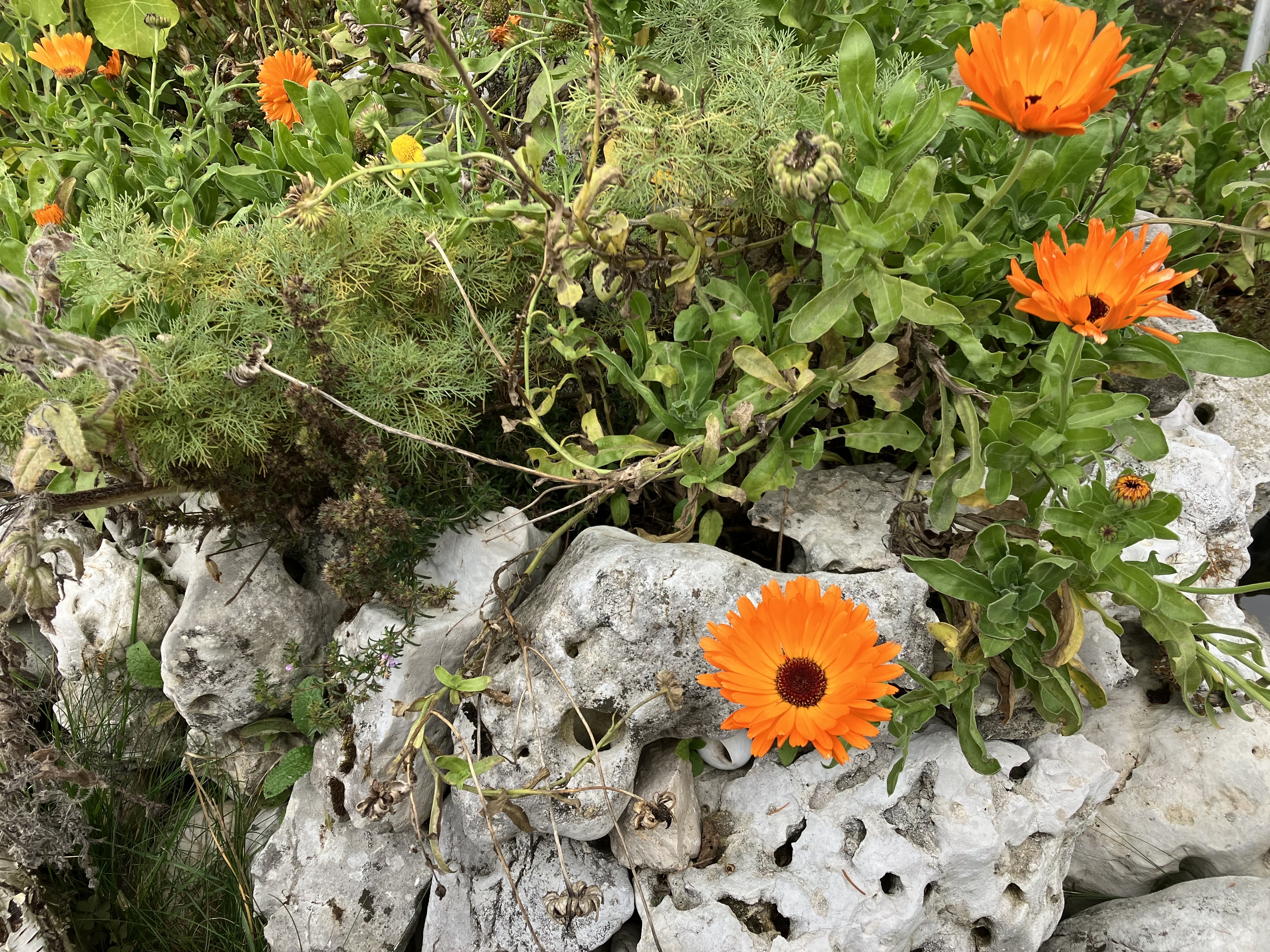 Quelques inages de notre spirale aux herbes aromatiques et aux floraisons d‘hiver